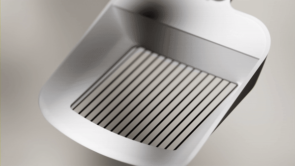 We designed a scoop with an adjustable mesh density, allowing for versatile sifting with just a press of a button. This feature helps efficiently filter out the small particles that contaminate the remaining litter, offering a longer lifespan and an overall better cleaning experience.